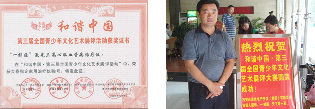 一刻通心脑血管病三高激光治疗仪自从上市以来,为广大中老年朋友送去健康的福音,但一刻通全体工作人员不仅时刻关注老年朋友的身心健康,同时也时刻关心着下一代青少年的健康成长,在此次“和谐中国·第三届全国青少年文化艺术展评活动”中,郑州邦泰生物科技有限公司为些次活动贡献自己的一份力量,为下一代青少年的健康成长注入自己的一份心血!由此获得了此次大赛指定家用治疗仪的光荣称号。